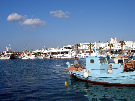 Inselhauptstadt Parikia anlegen. Täglich wird die Insel auch mit